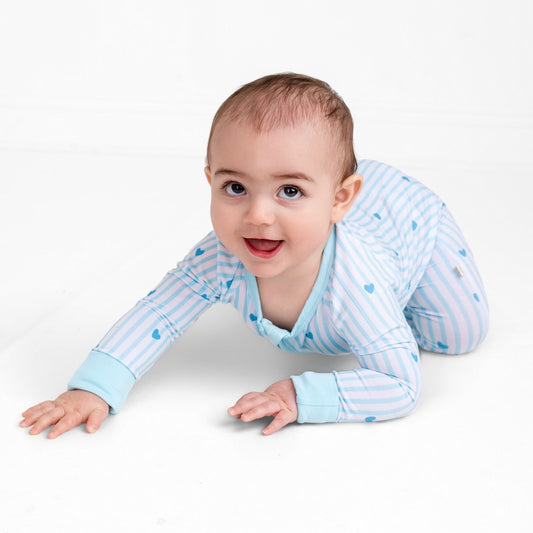 Tiny Hearts Blue Zip Romper