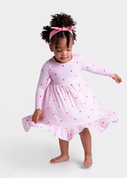 Tiny Heart Pink Twirl Dress