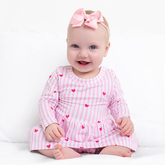 Tiny Heart Pink Twirl Dress with bodysuit